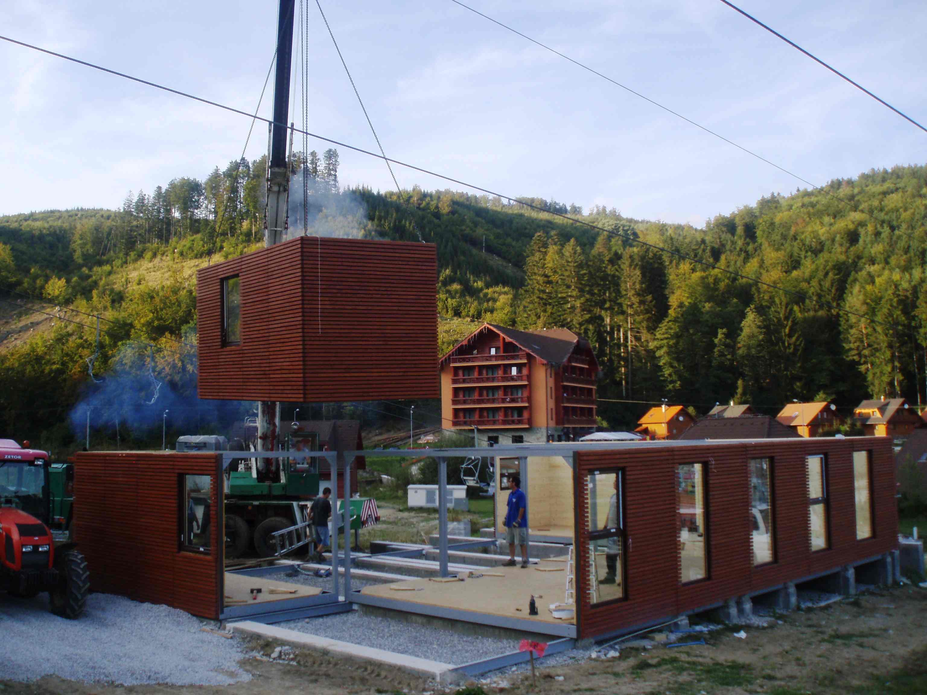Stavba půjčovny a servisu lyží ve Valčianské Dolině na Slovensku