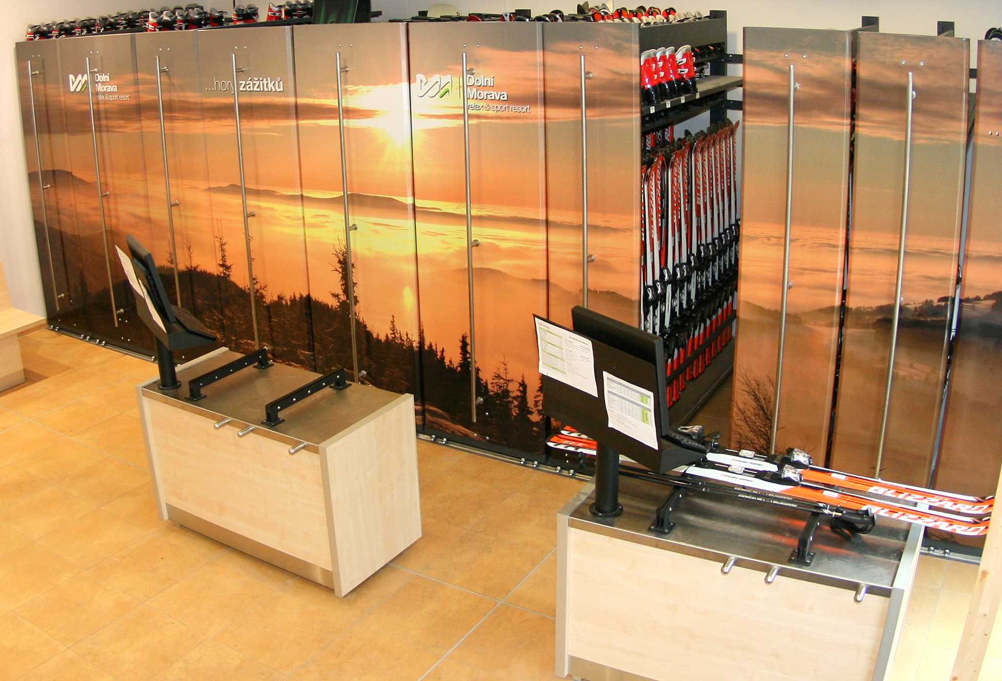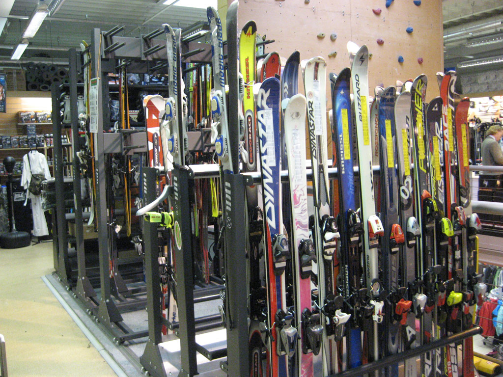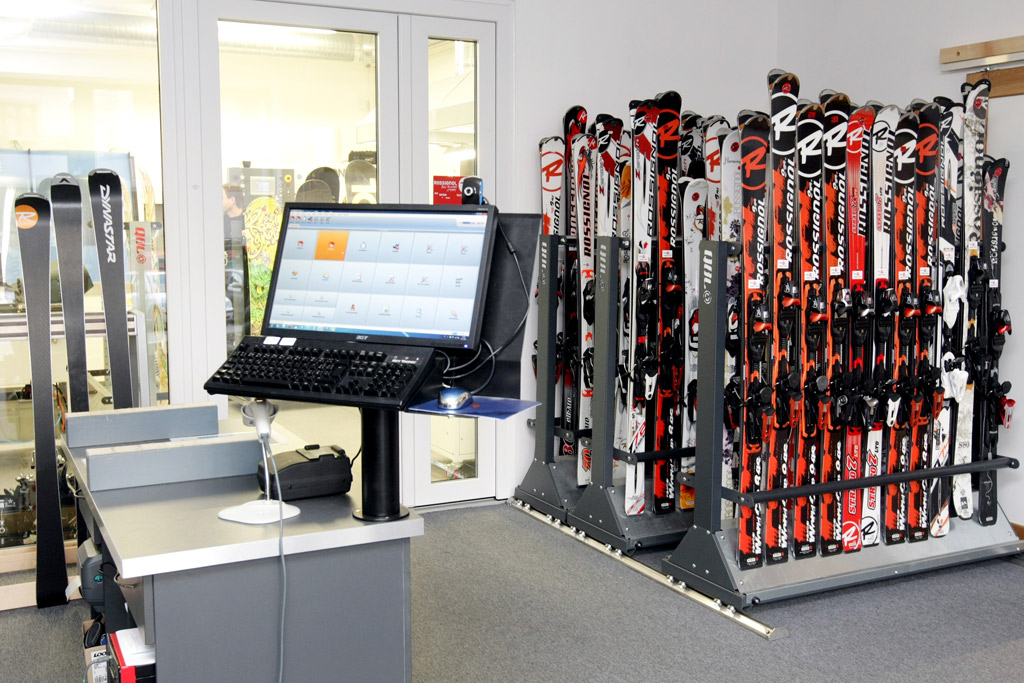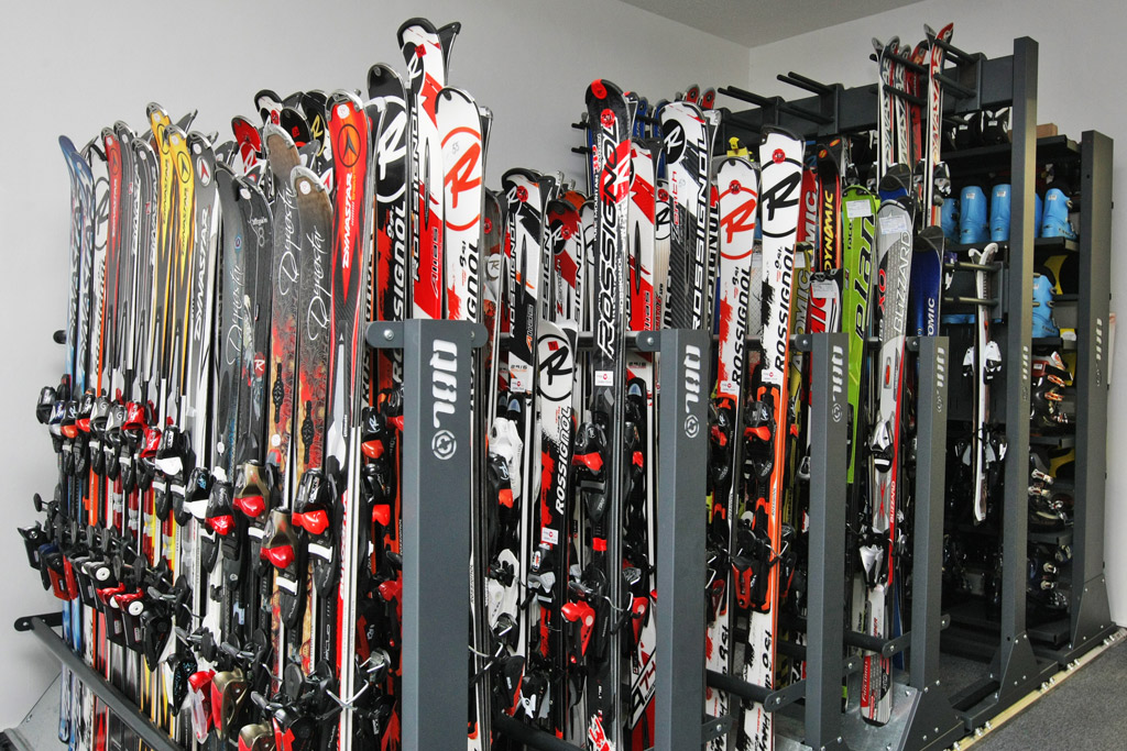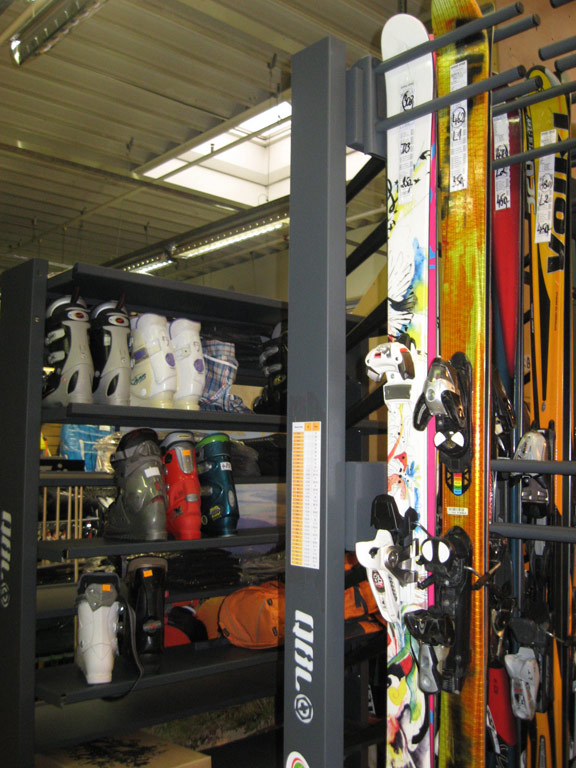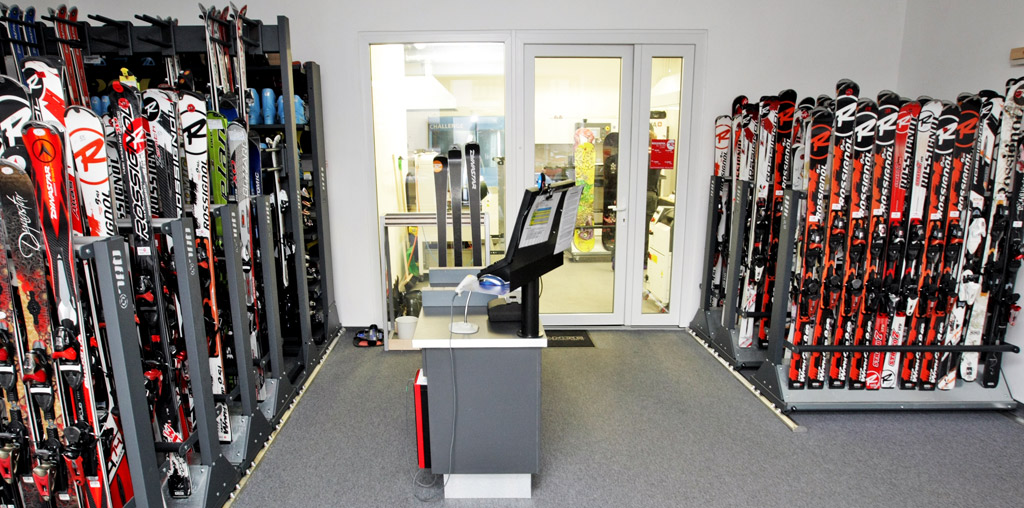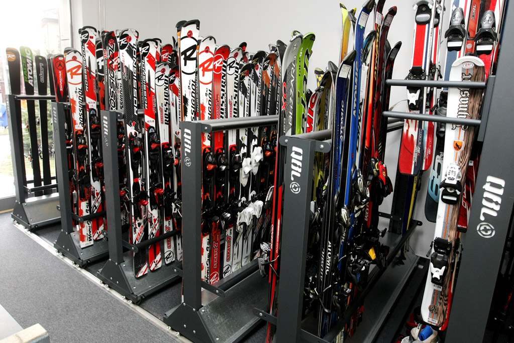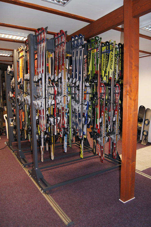 - Prohlédněte si vybavené ski půjčovny, servisy a obchody našimi regály a stojany.