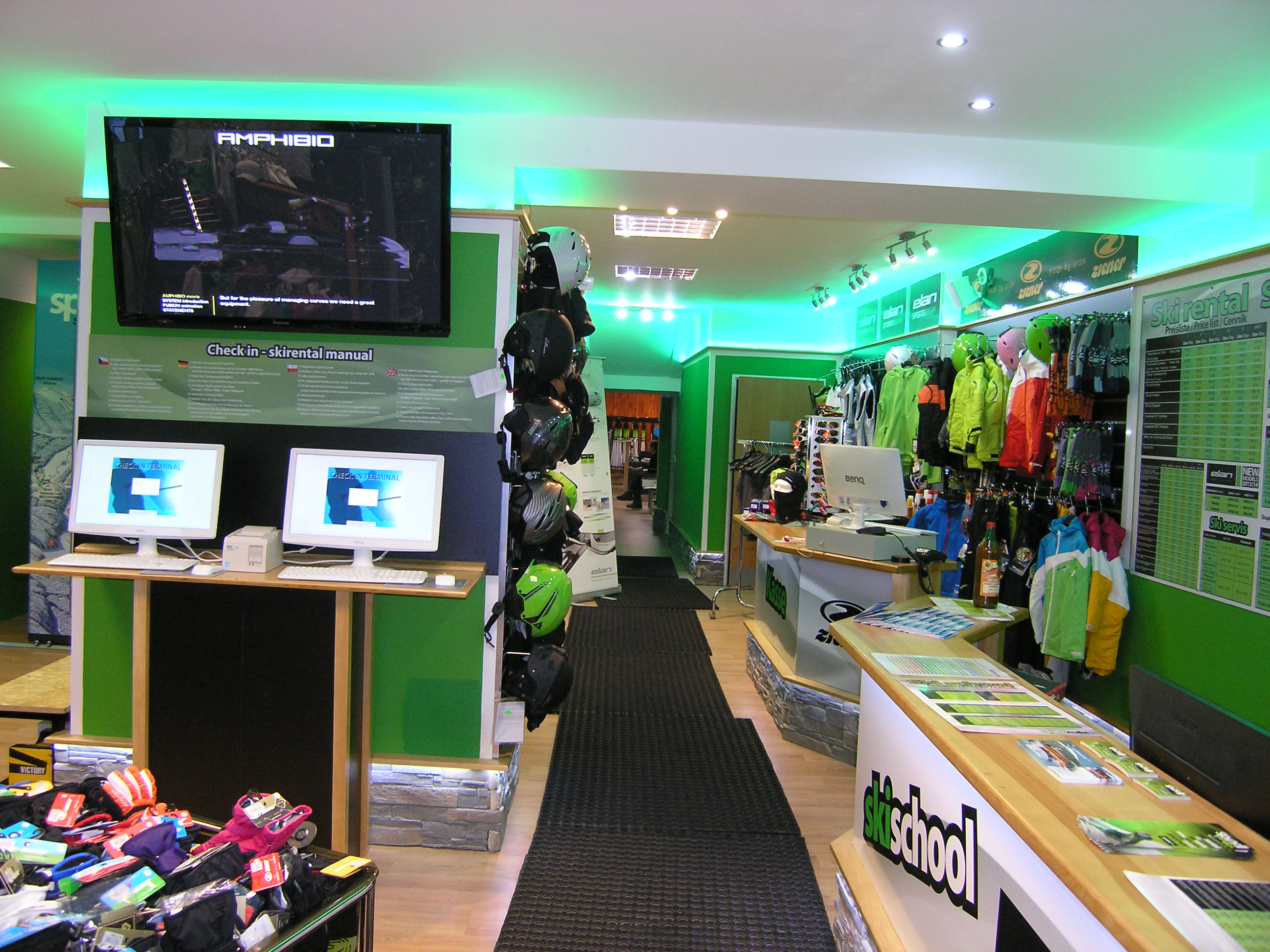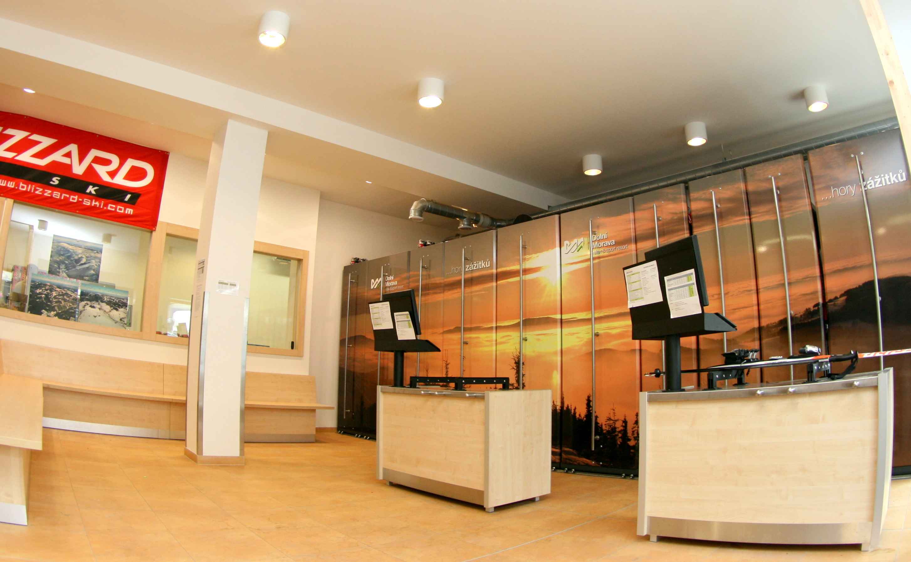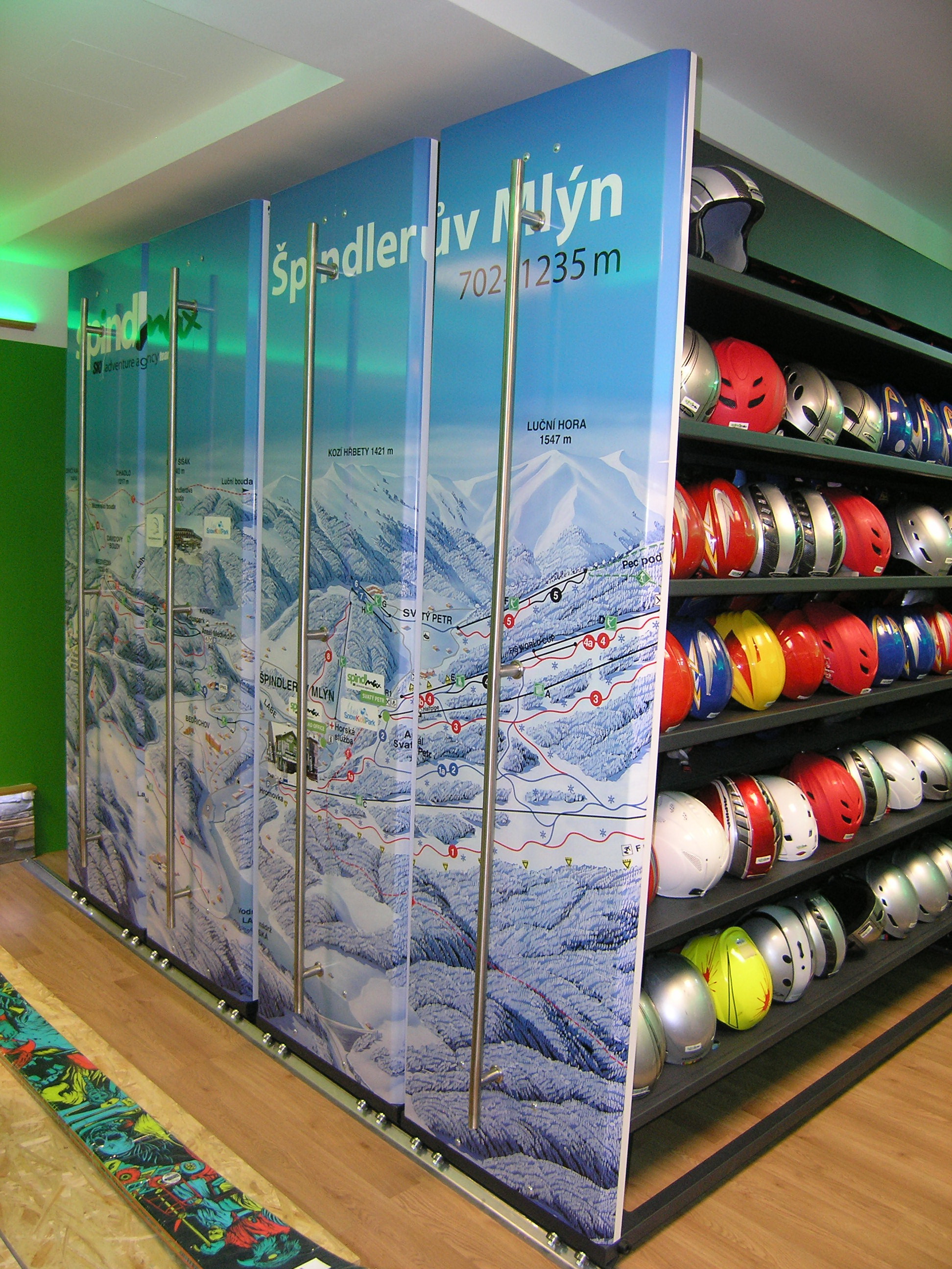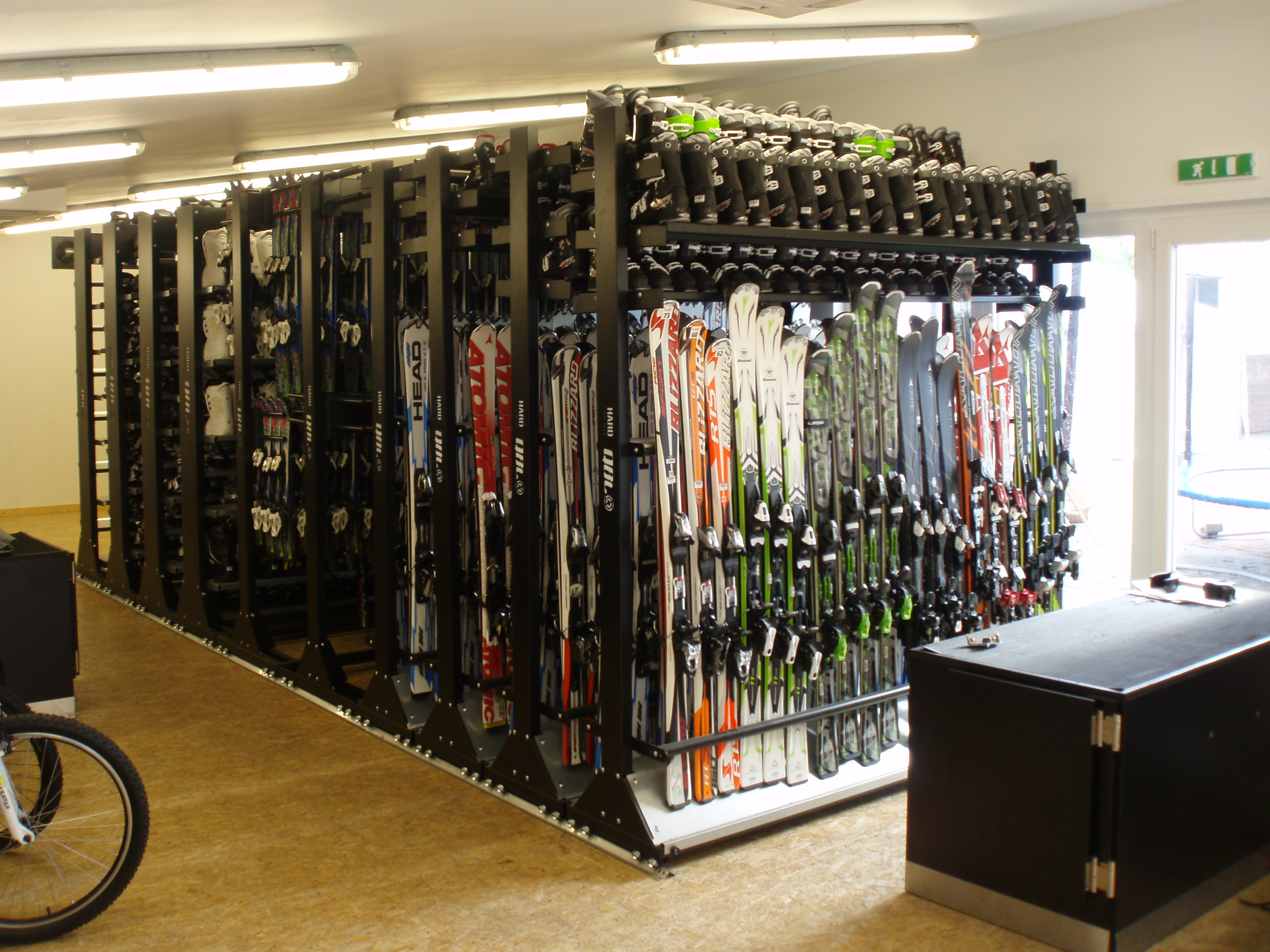 - Prohlédněte si vybavené ski půjčovny, servisy a obchody našimi regály a stojany.